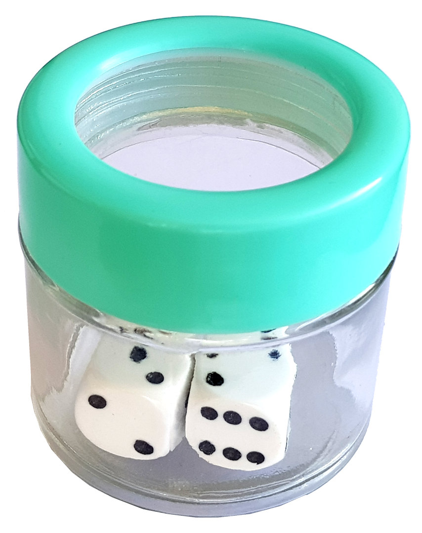 2 Würfel - 1,2,3,4,5,1 im Grünes Glas (6 fehlt)